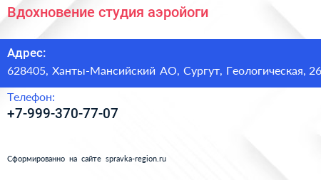 Вдохновение, студия аэройоги по адресу 628405, Ханты-Мансийский АО, Сургут, Геологическая, 26 в дальнейшем Организация, размещена в следующих категориях: