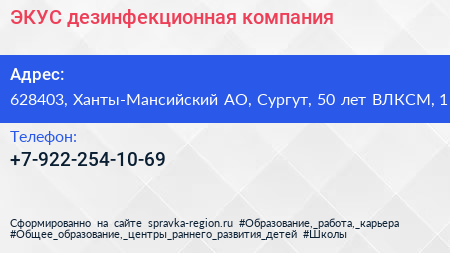 ЭКУС, дезинфекционная компания по адресу 628403, Ханты-Мансийский АО, Сургут, 50 лет ВЛКСМ, 1 в дальнейшем Организация, размещена в следующих категориях: