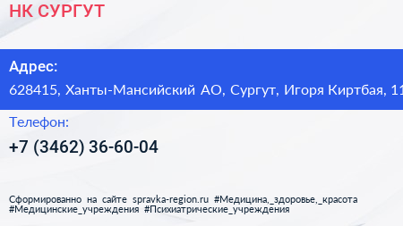 НК-СУРГУТ по адресу 628415, Ханты-Мансийский АО, Сургут, Игоря Киртбая, 11 в дальнейшем Организация, размещена в следующих категориях: