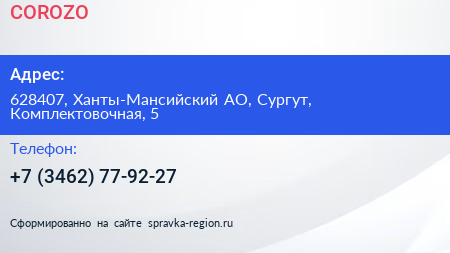 COROZO по адресу 628407, Ханты-Мансийский АО, Сургут, Комплектовочная, 5 в дальнейшем Организация, размещена в следующих категориях: