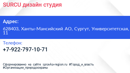 SURCU, дизайн-студия по адресу 628403, Ханты-Мансийский АО, Сургут, Университетская, 11 в дальнейшем Организация, размещена в следующих категориях: