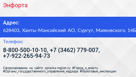 Энфорта по адресу 628403, Ханты-Мансийский АО, Сургут, Маяковского, 14Б в дальнейшем Организация, размещена в следующих категориях: