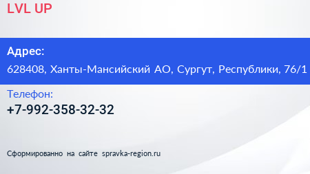 LVL.UP по адресу 628408, Ханты-Мансийский АО, Сургут, Республики, 76/1 в дальнейшем Организация, размещена в следующих категориях: