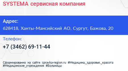 SYSTEMA, сервисная компания по адресу 628418, Ханты-Мансийский АО, Сургут, Бажова, 20 в дальнейшем Организация, размещена в следующих категориях:
