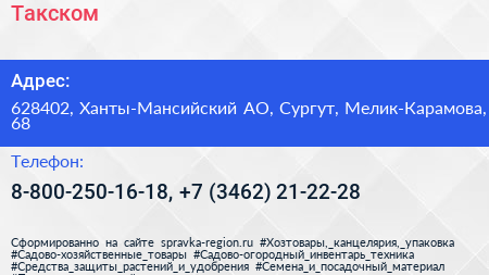 Такском по адресу 628402, Ханты-Мансийский АО, Сургут, Мелик-Карамова, 68 в дальнейшем Организация, размещена в следующих категориях: