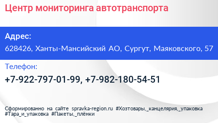Центр мониторинга автотранспорта по адресу 628426, Ханты-Мансийский АО, Сургут, Маяковского, 57 в дальнейшем Организация, размещена в следующих категориях: