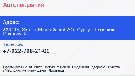 Автопокрытия по адресу 628415, Ханты-Мансийский АО, Сургут, Генерала Иванова, 8 в дальнейшем Организация, размещена в следующих категориях: