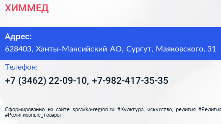 ХИММЕД по адресу 628403, Ханты-Мансийский АО, Сургут, Маяковского, 31 в дальнейшем Организация, размещена в следующих категориях: