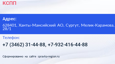 КСПП по адресу 628401, Ханты-Мансийский АО, Сургут, Мелик-Карамова, 28/1 в дальнейшем Организация, размещена в следующих категориях: