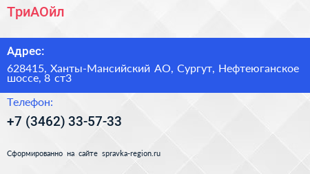 ТриАОйл по адресу 628415, Ханты-Мансийский АО, Сургут, Нефтеюганское шоссе, 8 ст3 в дальнейшем Организация, размещена в следующих категориях: