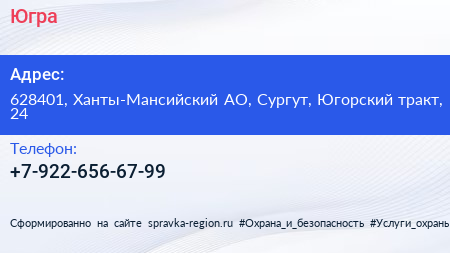 Югра по адресу 628401, Ханты-Мансийский АО, Сургут, Югорский тракт, 24 в дальнейшем Организация, размещена в следующих категориях: