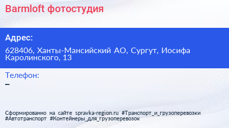 Barmloft, фотостудия по адресу 628406, Ханты-Мансийский АО, Сургут, Иосифа Каролинского, 13 в дальнейшем Организация, размещена в следующих категориях: