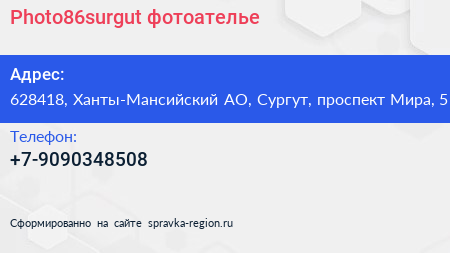 #Photo86surgut, фотоателье по адресу 628418, Ханты-Мансийский АО, Сургут, проспект Мира, 5 в дальнейшем Организация, размещена в следующих категориях: