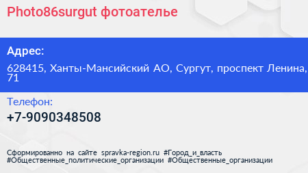 #Photo86surgut, фотоателье по адресу 628415, Ханты-Мансийский АО, Сургут, проспект Ленина, 71 в дальнейшем Организация, размещена в следующих категориях: