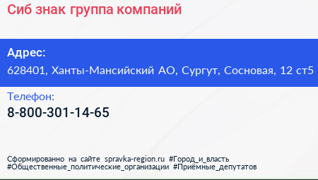 Сиб-знак, группа компаний по адресу 628401, Ханты-Мансийский АО, Сургут, Сосновая, 12 ст5 в дальнейшем Организация, размещена в следующих категориях: