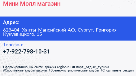 Мини Молл, магазин по адресу 628404, Ханты-Мансийский АО, Сургут, Григория Кукуевицкого, 15 в дальнейшем Организация, размещена в следующих категориях: