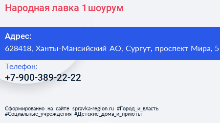 Народная лавка №1, шоурум по адресу 628418, Ханты-Мансийский АО, Сургут, проспект Мира, 5 в дальнейшем Организация, размещена в следующих категориях: