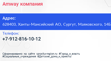 Amway, компания по адресу 628403, Ханты-Мансийский АО, Сургут, Маяковского, 14Б в дальнейшем Организация, размещена в следующих категориях: