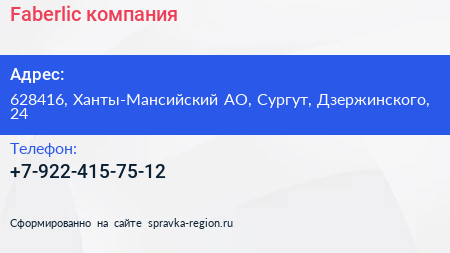 Faberlic, компания по адресу 628416, Ханты-Мансийский АО, Сургут, Дзержинского, 24 в дальнейшем Организация, размещена в следующих категориях: