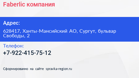 Faberlic, компания по адресу 628417, Ханты-Мансийский АО, Сургут, бульвар Свободы, 2 в дальнейшем Организация, размещена в следующих категориях: