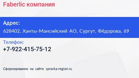 Faberlic, компания по адресу 628402, Ханты-Мансийский АО, Сургут, Фёдорова, 69 в дальнейшем Организация, размещена в следующих категориях: