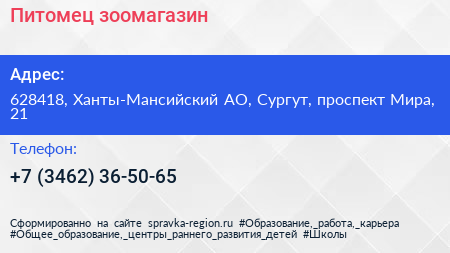 Питомец, зоомагазин по адресу 628418, Ханты-Мансийский АО, Сургут, проспект Мира, 21 в дальнейшем Организация, размещена в следующих категориях: