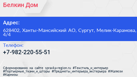 Белкин Дом по адресу 628402, Ханты-Мансийский АО, Сургут, Мелик-Карамова, 4/4 в дальнейшем Организация, размещена в следующих категориях: