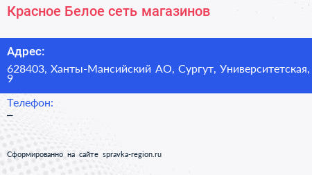 Красное & Белое, сеть магазинов по адресу 628403, Ханты-Мансийский АО, Сургут, Университетская, 9 в дальнейшем Организация, размещена в следующих категориях:
