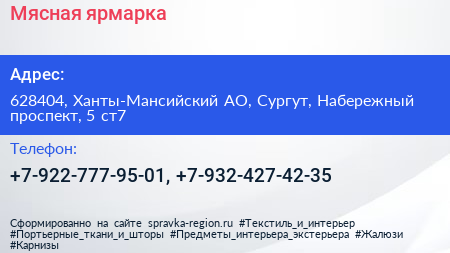Мясная ярмарка по адресу 628404, Ханты-Мансийский АО, Сургут, Набережный проспект, 5 ст7 в дальнейшем Организация, размещена в следующих категориях:
