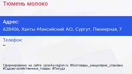 Тюмень молоко по адресу 628406, Ханты-Мансийский АО, Сургут, Пионерная, 7 в дальнейшем Организация, размещена в следующих категориях: