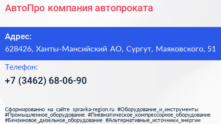 АвтоПро, компания автопроката по адресу 628426, Ханты-Мансийский АО, Сургут, Маяковского, 51 в дальнейшем Организация, размещена в следующих категориях: