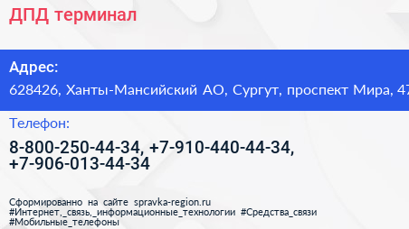ДПД, терминал по адресу 628426, Ханты-Мансийский АО, Сургут, проспект Мира, 47 в дальнейшем Организация, размещена в следующих категориях:
