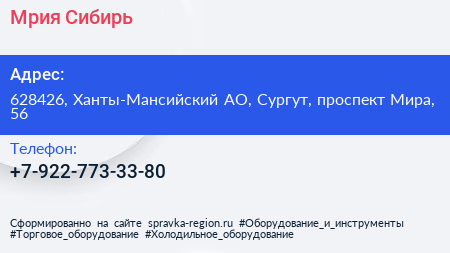 Мрия Сибирь по адресу 628426, Ханты-Мансийский АО, Сургут, проспект Мира, 56 в дальнейшем Организация, размещена в следующих категориях: