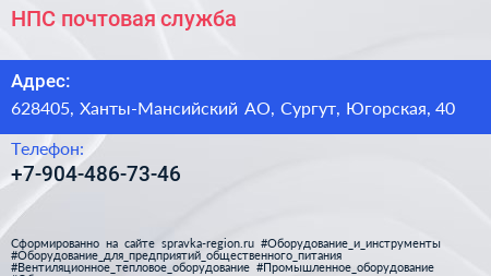 НПС, почтовая служба по адресу 628405, Ханты-Мансийский АО, Сургут, Югорская, 40 в дальнейшем Организация, размещена в следующих категориях: