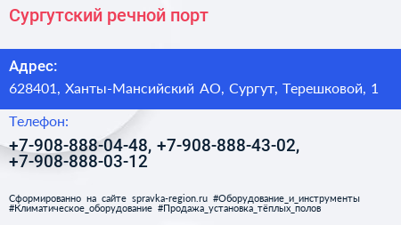 Сургутский речной порт по адресу 628401, Ханты-Мансийский АО, Сургут, Терешковой, 1 в дальнейшем Организация, размещена в следующих категориях: