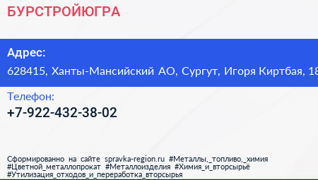 БУРСТРОЙЮГРА по адресу 628415, Ханты-Мансийский АО, Сургут, Игоря Киртбая, 18 в дальнейшем Организация, размещена в следующих категориях: