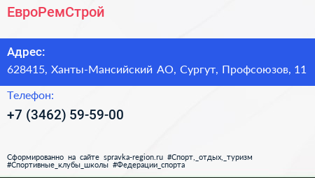 ЕвроРемСтрой по адресу 628415, Ханты-Мансийский АО, Сургут, Профсоюзов, 11 в дальнейшем Организация, размещена в следующих категориях: