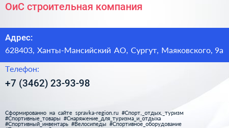 ОиС, строительная компания по адресу 628403, Ханты-Мансийский АО, Сургут, Маяковского, 9а в дальнейшем Организация, размещена в следующих категориях: