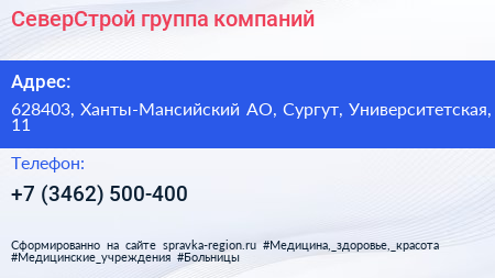 СеверСтрой, группа компаний по адресу 628403, Ханты-Мансийский АО, Сургут, Университетская, 11 в дальнейшем Организация, размещена в следующих категориях: