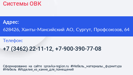 Системы ОВК по адресу 628426, Ханты-Мансийский АО, Сургут, Профсоюзов, 64 в дальнейшем Организация, размещена в следующих категориях: