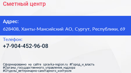 Сметный центр по адресу 628408, Ханты-Мансийский АО, Сургут, Республики, 69 в дальнейшем Организация, размещена в следующих категориях: