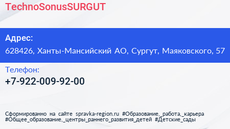 TechnoSonusSURGUT по адресу 628426, Ханты-Мансийский АО, Сургут, Маяковского, 57 в дальнейшем Организация, размещена в следующих категориях: