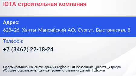 ЮТА, строительная компания по адресу 628426, Ханты-Мансийский АО, Сургут, Быстринская, 8 в дальнейшем Организация, размещена в следующих категориях: