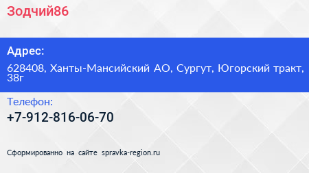 Зодчий86 по адресу 628408, Ханты-Мансийский АО, Сургут, Югорский тракт, 38г в дальнейшем Организация, размещена в следующих категориях: