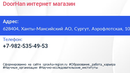 DoorHan, интернет-магазин по адресу 628404, Ханты-Мансийский АО, Сургут, Аэрофлотская, 10 в дальнейшем Организация, размещена в следующих категориях: