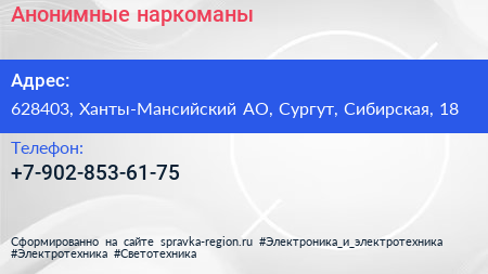 Анонимные наркоманы по адресу 628403, Ханты-Мансийский АО, Сургут, Сибирская, 18 в дальнейшем Организация, размещена в следующих категориях: