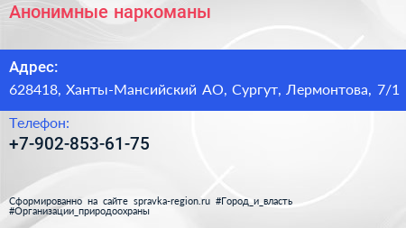 Анонимные наркоманы по адресу 628418, Ханты-Мансийский АО, Сургут, Лермонтова, 7/1 в дальнейшем Организация, размещена в следующих категориях: