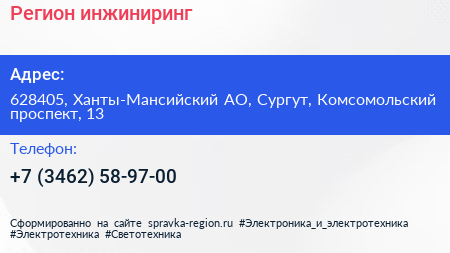 Регион инжиниринг по адресу 628405, Ханты-Мансийский АО, Сургут, Комсомольский проспект, 13 в дальнейшем Организация, размещена в следующих категориях: