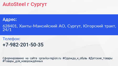 AutoSteel, г. Сургут по адресу 628401, Ханты-Мансийский АО, Сургут, Югорский тракт, 24/1 в дальнейшем Организация, размещена в следующих категориях:
