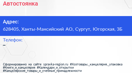 Автостоянка по адресу 628405, Ханты-Мансийский АО, Сургут, Югорская, 3Б в дальнейшем Организация, размещена в следующих категориях: